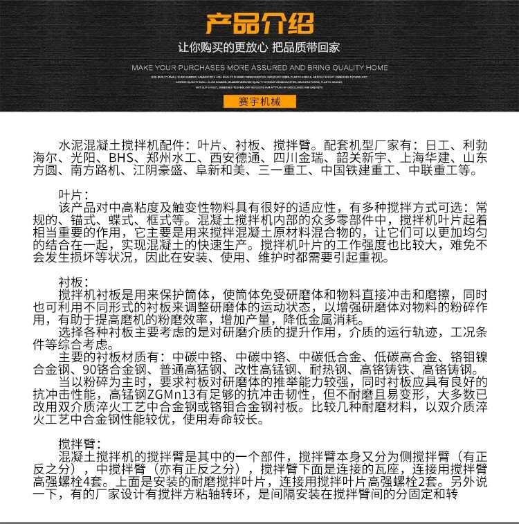 歸屬行業:仕高瑪120站2方攪拌機葉片襯板攪拌臂原廠配件