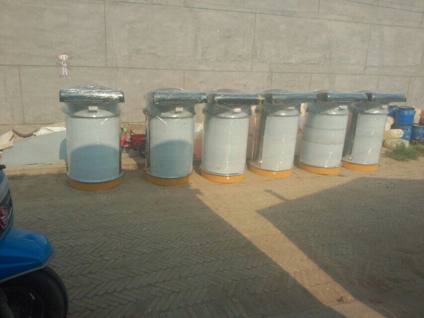 倉頂單機除塵器的結構:倉頂單機除塵器是一種圓形可拆的金屬濾筒,底板上有14個嵌入圓形孔,它設有14個濾芯,扎緊在上端1個振動器的吊架上,定時震動,使濾芯阻留下來的灰塵降落在倉內。