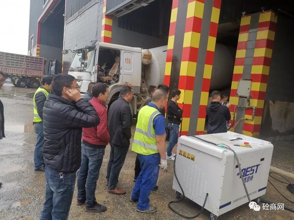 小編按照約定時間剛到現場,就看到熱心的楊站長召集了臨近的幾家攪拌站站長早已在我們的攪拌站高壓清洗機旁等候,都想一睹高壓清洗機的“威懾力吧!