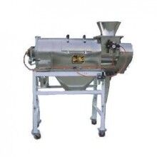 本設備篩網為圓筒狀,置于機體內,物料通過螺旋輸送系統后,和氣流混合,霧化進入網桶內;通過網桶內風輪葉片使物料同時受離心力和旋風推進力,從而迫使物料噴射過網,由細料排出口排出,不能過網的物料沿網桶壁從粗料排出口排出。