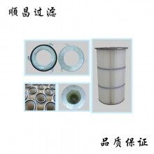 除塵濾芯的品種較多,有細而長與粗而短之分。細長除塵濾芯(如φ≤160,L=1~2m),其褶(如45褶)間空隙大、夾角大,褶少而淺,過濾面積比同徑同長的濾袋大2~5倍,清灰易而效果好;適用于濃度≥15g/m粉塵的過濾除塵,過濾風速0.6~1.2m/min。粗短除塵濾芯(如φ350,L=0.66m)直徑大、長度短、褶多(120~350褶)而深、褶間空隙小,過濾面積大,較之同徑同長濾袋面積大14~35倍,適于場地面積小、空間小的地方布置;但因褶角小,粉塵易積聚,難于清灰,適于濃度≤5g/m粉塵的過濾除塵,過濾風速不宜>0.6m/min。