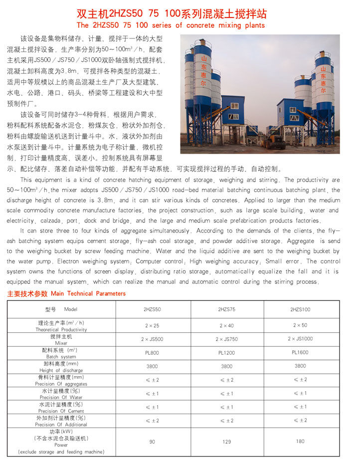 歸屬行業:雙主機2HZS100混凝土攪拌站