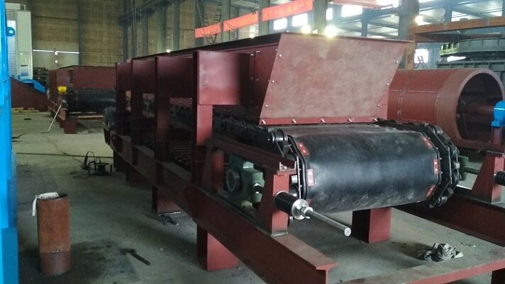 我公司研制的新型板式喂料機,結合皮帶輸送機和板式喂料機的優點,能輸送含水率高的粘性物料,獨特的新型刮料裝置,能把粘在高強皮帶上的料自動清理下來,清理下來的物料掉到下道工序上。