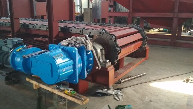 常用齒輥式破碎機的型號有三種,分別為2NPG1010.2NPG1212和2NPG1414,那么與之相配套的新型板式喂料機為GBP1000×L, GBP1200×L, GBP1400×L. 其中L為新型板式給料機頭尾輪中心距,由現場安裝場地大小確定。電機減速機的選型由產量確定。