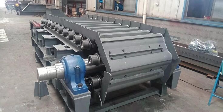 板式給料機的寬度一般按兩倍的最大粒度加上200mm, 還應考慮好與破碎機進料口的寬度連接的問題。