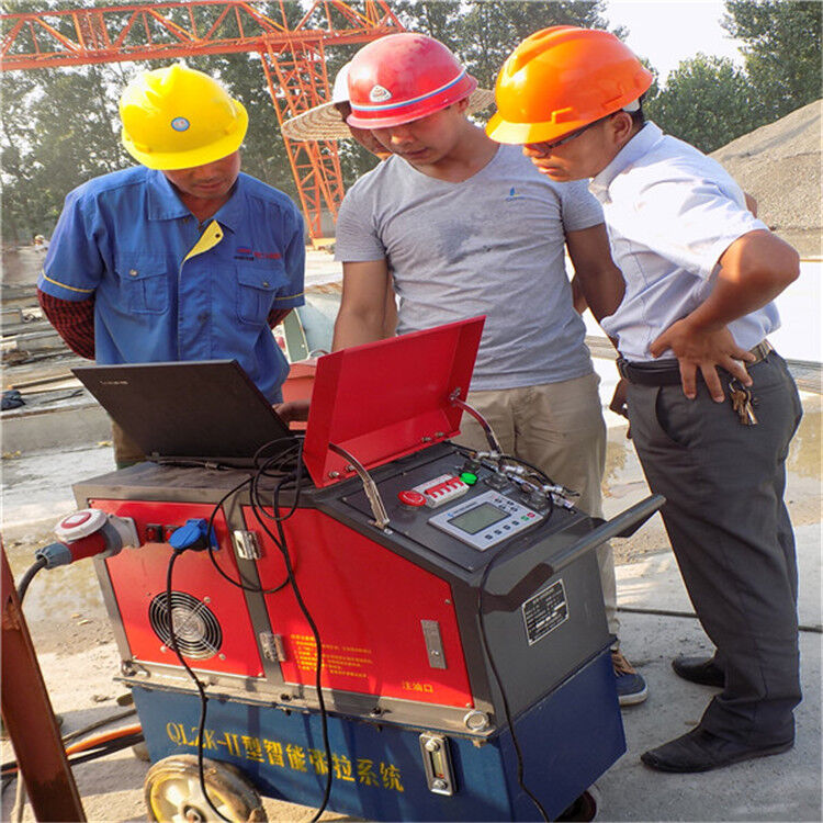 本系統的特點是結構簡單,張拉控制精度可達到0.5%要求,千斤頂端只有測量伸長值的位移傳感器需要引線,可靠性好,工人操作千斤頂與原手動操作相同,且減少了伸長值測量和記錄等工作量。集成了計算機自動控制技術、無線傳輸技術、數據監控分析技術于一體。
