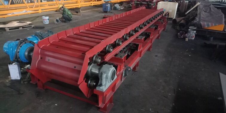 1、具有耐用時(shí)間長、維護(hù)簡單、維護(hù)成本低的優(yōu)點(diǎn)。鏈板與物料直接接觸部位的材料選用耐磨性鋼材,但是鋼材的硬度越高,可加工成型的難度也大,而且易開裂,試驗(yàn)多種材料的結(jié)果,要既保證韌性同時(shí)也具有較高的耐磨性能。密封板式喂料機(jī)的耐磨方式是在每個(gè)鏈板上加上了弧面,固定兩根耐磨鋼條(方型或圓型)。物料從進(jìn)料口落入到鏈板上,由于物料自然具有的顆粒分級(jí)作用,細(xì)料和細(xì)碎料會(huì)自動(dòng)落到最下面的鏈板上面。上述的兩條鋼條有較硬的固定這些碎粉料而不會(huì)流走。在整個(gè)鏈板表面上就覆蓋有一層細(xì)碎物料,上面的大顆粒物料就不再與鏈板接觸,有效防止鏈板被磨損。合金構(gòu)造的鏈板及獨(dú)立的潤滑系統(tǒng)以及設(shè)備的結(jié)構(gòu)和輸送形式使設(shè)備的維護(hù)及維修更加方便簡單,可以單獨(dú)更換損壞的鏈板和槽板。