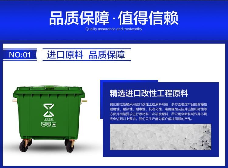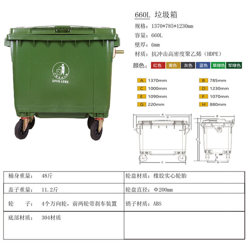 660升環衛垃圾桶廠家,加厚新料戶外垃圾車價格,660升戶外垃圾桶批發,賽普塑業生產的醫療垃圾桶采用高密度聚乙烯(HDPE)一次注模而成,絕無焊縫;塑料垃圾桶容易清洗,擦洗后仍光潔如新,目前在建設綠色重慶,健康重慶,宜居重慶等,而城市的形象都關系到垃圾桶,垃圾桶是城市中不可或缺的環保設施,如小區垃圾桶,街道垃圾桶,660升加厚垃圾桶廠家,加厚新料戶外垃圾桶價格,660升戶外垃圾桶批發馬路垃圾桶,物業垃圾桶等等。除了考慮垃圾桶的外形,重要的一點還是垃圾桶的質量和容量。我們生產的垃圾桶小到40升,大到上千升。大小容量均有,是物業及環保業的。供應重慶各區各縣各企業塑料垃圾桶,所有材質為PE新料制品。660升加厚垃圾桶廠家,加厚新料戶外垃圾桶價格,660升戶外垃圾桶批發
