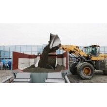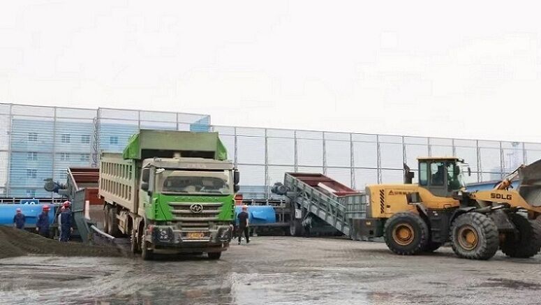2)側傾自卸運煤汽車直接卸煤至地表給料機的接收料斗;