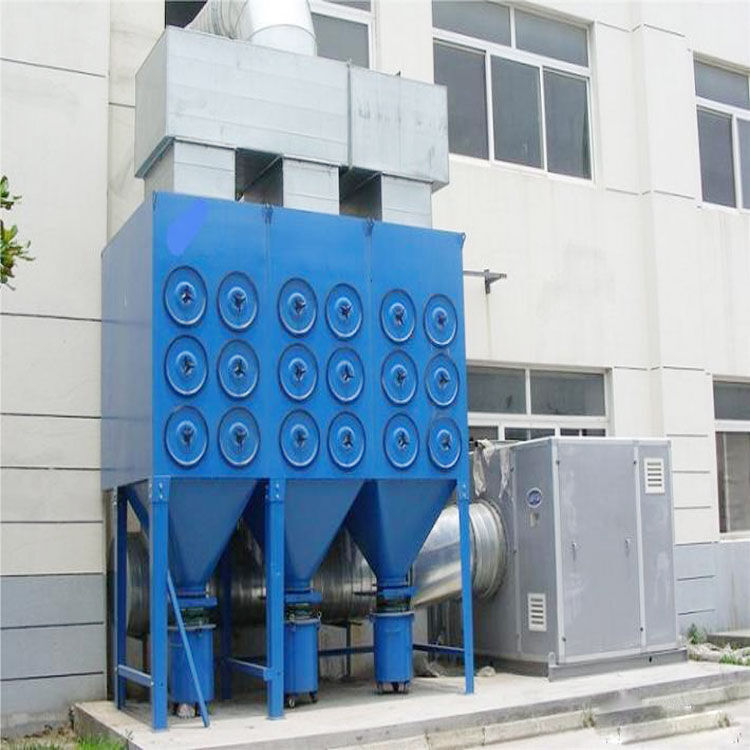 在正常運行時,如:重力、慣性力、碰撞、靜電吸附,篩濾作用等。含塵空氣由頂部入口進入濾筒式除塵器,較大的粉塵顆粒因截面積增大,風速下降而提高直接沉降,較小的煙塵粉塵顆粒通過濾筒。粉塵被捕集在過濾筒外邊,清潔空氣則經由濾筒中心進入清潔空氣室,再經出口由引風機排出。隨著過濾不斷進行,濾筒表面的煙塵粉塵越積越多,阻力不斷升高,及至濾筒清灰時,固態控制將操縱電磁閥以打開一個空氣隔膜閥,于是高壓空氣便直接沖入所選濾筒中心,把捕集在濾件表面上的粉塵吹掃一清,使濾筒再生。粉塵則隨主氣流所趨,并在重力的作用下向下落入塵斗中。周而復始,連續過濾,使設備連續進行得到保障。