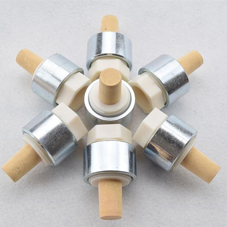 氣嘴是一種安裝方便、使用范圍廣泛的破拱助流設備,能安裝于料斗、料倉尤其是管道上。氣嘴前部是多孔金屬,外部通入的高壓空氣,經過氣嘴后均勻分散在氣嘴周圍,促使粉料流動,達到助流效果。流化效果由氣嘴數量確定,不同的粉料及容器狀況需要不同數量的氣嘴。本產品具有安裝維護方便,價格低廉、流化效果明顯等突出優點。