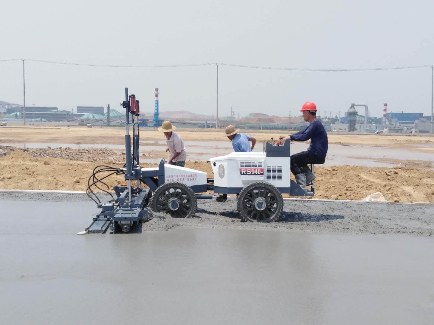 3.奧力德激光整平機施工流程:首先通過基準點,找到標高,調整激光發射器控制標高。然后直接倒混凝土,機器一次性刮平、提漿、壓實。實現大面積攤鋪