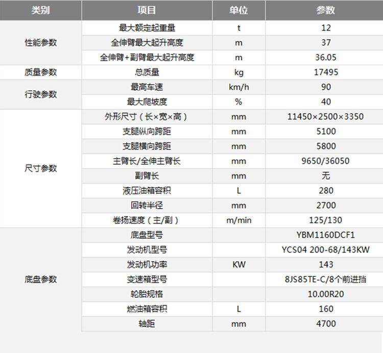 1.大臂鋼材采用上海寶鋼BS700mck2高強度鋼,五節臂設計,最大吊高37米