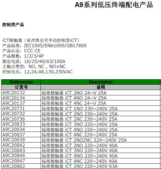 歸屬行業:標準接觸器iCT 4NC 240V 25A