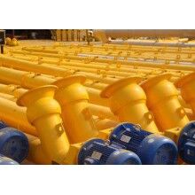 水泥等粉料的輸送必須在完全密封的腔體內進行,以免污染環境和輸送物料受潮。O形截面的螺旋輸送機是應用最廣泛的粉料供料輸送裝置。其機殼采用無縫鋼管,常見規格有φ219,φ273,φ325,機殼尾部進口通過球形絞鏈與筒倉翻板門連接,頭部出口通過帆布袋柔軟連接通向主體上的粉料秤斗。安裝傾角一般在30°~45°之間,必要時可達60°。螺旋的長度不應超過14m,可通過更換中間節段得到不同的螺旋總長度。