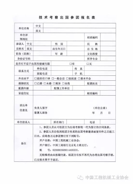 考察團初步預計境外活動時間14天,參團費3萬元人民幣/人,其中含往返機票、境外食宿費、境外交通費、雜費等,不包括在國內發生的費用。歡迎工程機械相關單位人員報名參加,報名費2000元,用于辦理出國手續。