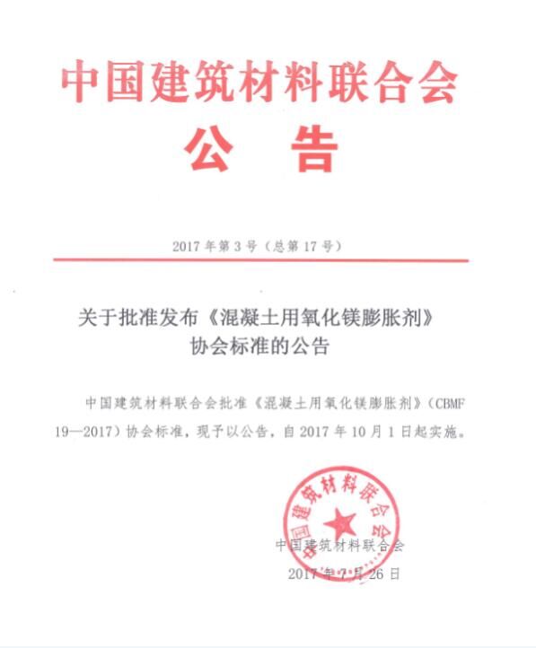 2017年7月,由中國混凝土與水泥制品協會(以下簡稱協會)組織制定的《預制混凝土箱涵工藝技術規程》和《混凝土用氧化鎂膨脹劑》兩項協會標準,通過審定并發布批準公告,標準號分別為CBMF 18-2017和CBMF 19-2017,將同時于2017年10月1日起實施。這是國務院《深化標準化工作改革方案》(國發[2015]13號)及質檢總局、國家標準委《關于培育和發展團體標準的指導意見》(國質檢標聯[2016]109號)發布后,協會與中國建筑材料聯合會(以下簡稱聯合會)聯合發布的首批協會標準,兩項標準將公開出版并發行。
