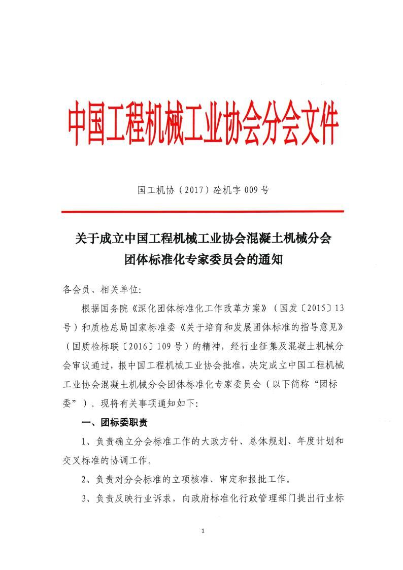 《關(guān)于成立中國(guó)工程機(jī)械工業(yè)協(xié)會(huì)混凝土機(jī)械分會(huì)團(tuán)體標(biāo)準(zhǔn)化專(zhuān)家委員會(huì)的通知》