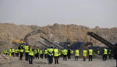 工地參觀也是此次論壇的重要環節。全體嘉賓來到山東淄博依廠礦業的石灰石采石場,近距離了解克林曼移動式破碎篩分設備的性能及生產出的骨料質量。