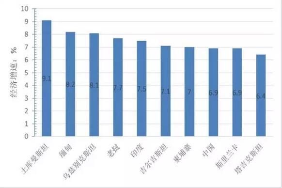 圖3 “一帶一路”地區經濟增速前10名的國家