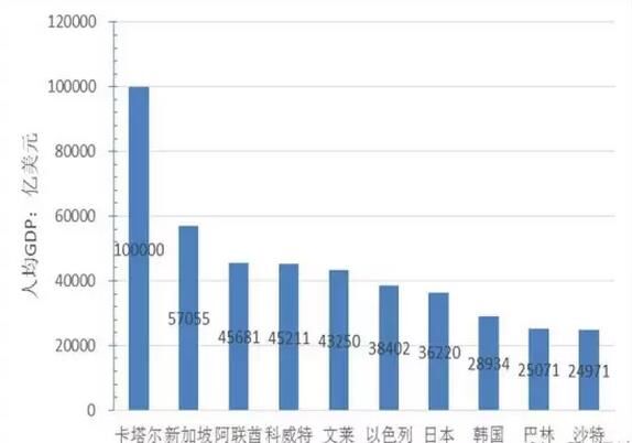 從人均GDP看,貧富差距巨大,最富有國家的人均財富是最窮國家的160倍。人均GDP超過2萬美元的國家13個,分別為卡塔爾、新加坡、阿聯酋、科威特、文萊、以色列、日本、韓國、巴林、沙特、斯洛文尼亞、捷克共和國、愛沙尼亞,其中卡特爾的人均GDP超過了10萬美元、位居第一,為最窮國家阿富汗人均GDP的160倍;人均GDP在1萬美元到2萬美元的國家13個,人均GDP在5000美元到1萬美元的國家13個,人均GDP低于5000美元的國家28個。中國人均GDP8000美元,在“一帶一路”沿線國家中位于31名。