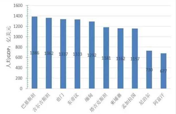 圖5“一帶一路”地區人均GDP后10名的國家